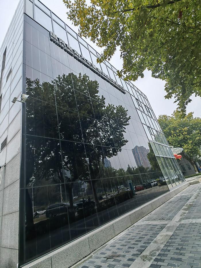 在设计方面,中茂光伏科技设计团队根据企业办公楼现有情况,就组件种类、承重结构、安装方式、施工及运维等方面做了精心规划和布局,利用碲化镉发电玻璃弱光发电能力强、稳定性好、耐腐蚀、耐紫外线、耐酸碱及低碳、安全、美观的优点,将其设计为建筑构件,以此充分利用建筑立面空间,实现建筑的节能减排目标。