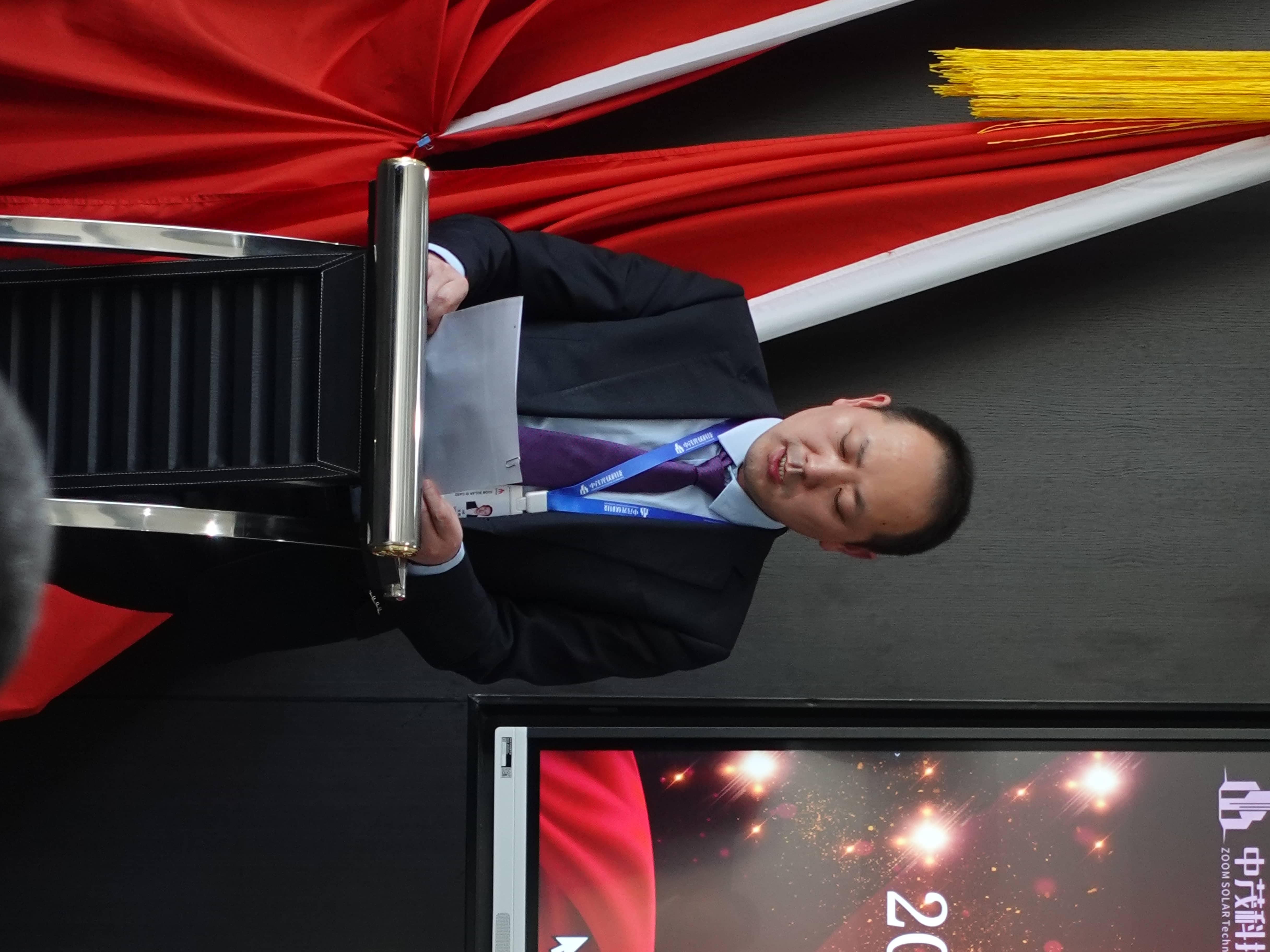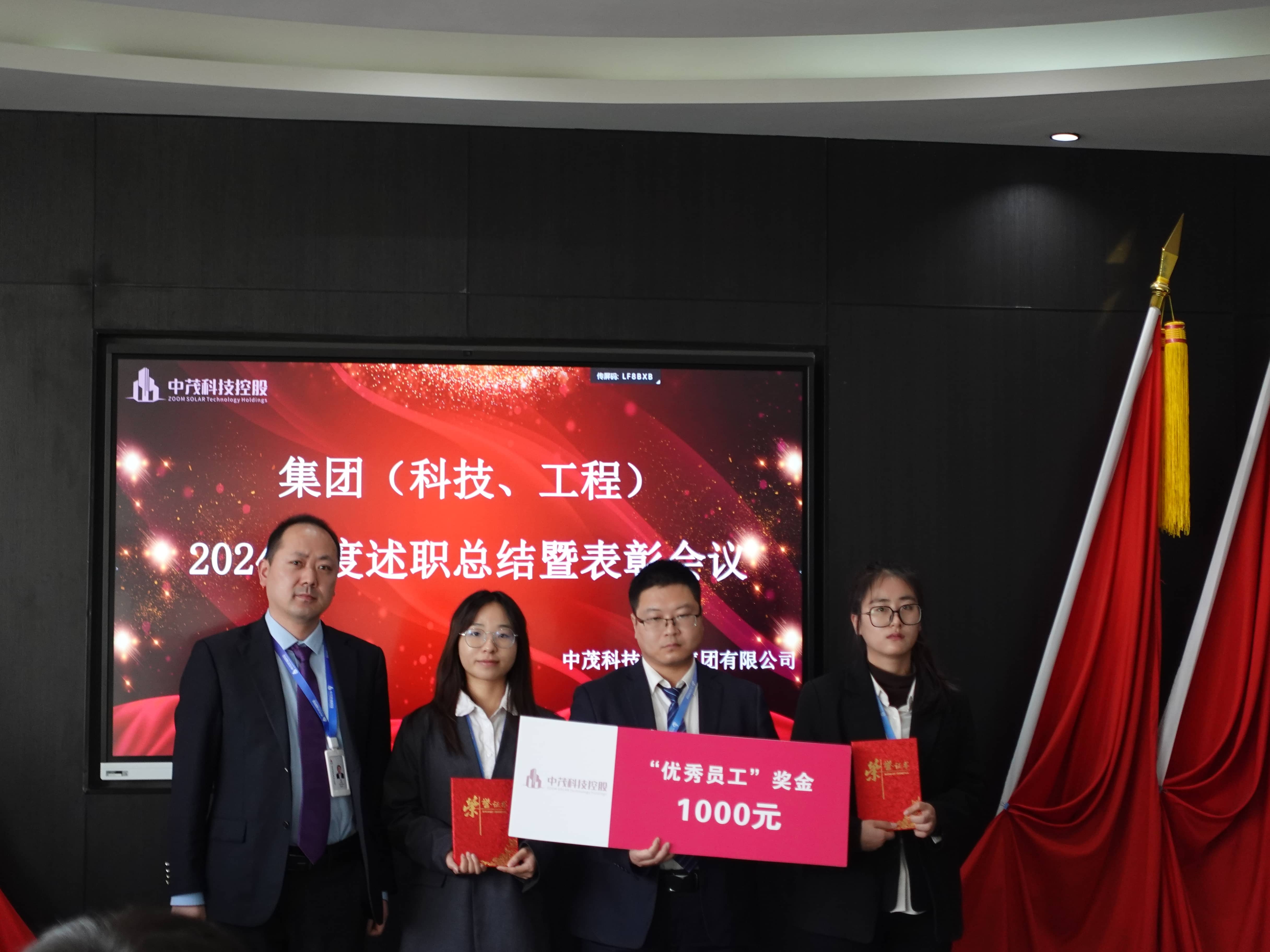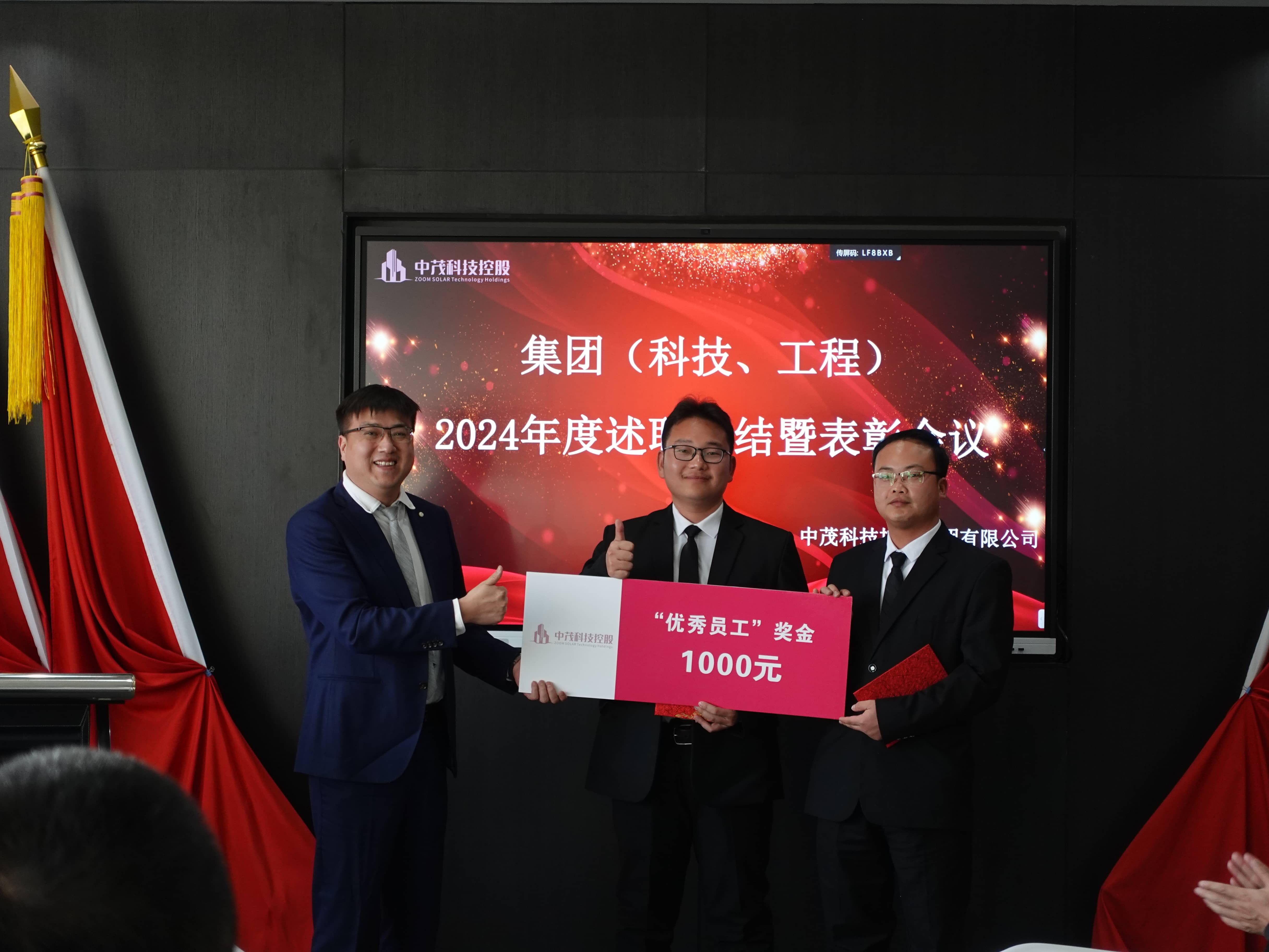 最后颁发中茂之星奖,许国英上台领奖,丁总上台颁发荣誉证书及现金10000元并合影留念。这些荣誉不仅是对个人与团队努力的肯定,更是对光伏行业未来无限可能的期许。让我们以荣誉为动力,继续引领光伏技术革新,照亮绿色地球的梦想之路。