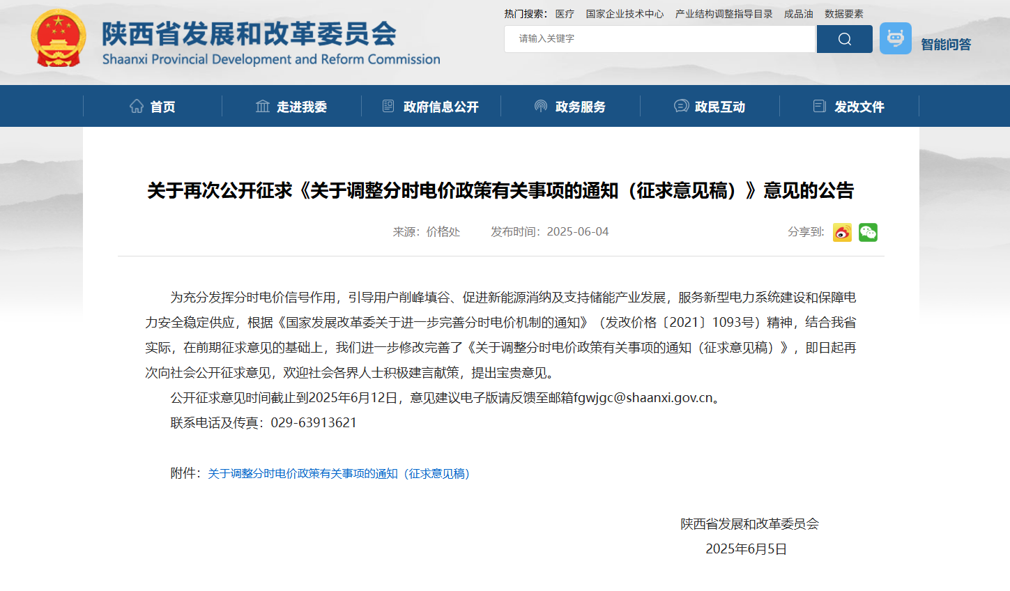 6月4日,陕西省发展和改革委员会发布《关于调整分时电价政策有关事项的通知(征求意见稿)》的再次征求意见公告,对全省工业、商业、农业用电帧峰谷时段进行重新划分,并针对夏季、冬季尖峰时段和重大节假日深谷时段提出新要求。引导用户削峰填谷、促进新能源消纳及支持储能产业发展,服务新型电力系统建设和保障电力安全稳定供应。
