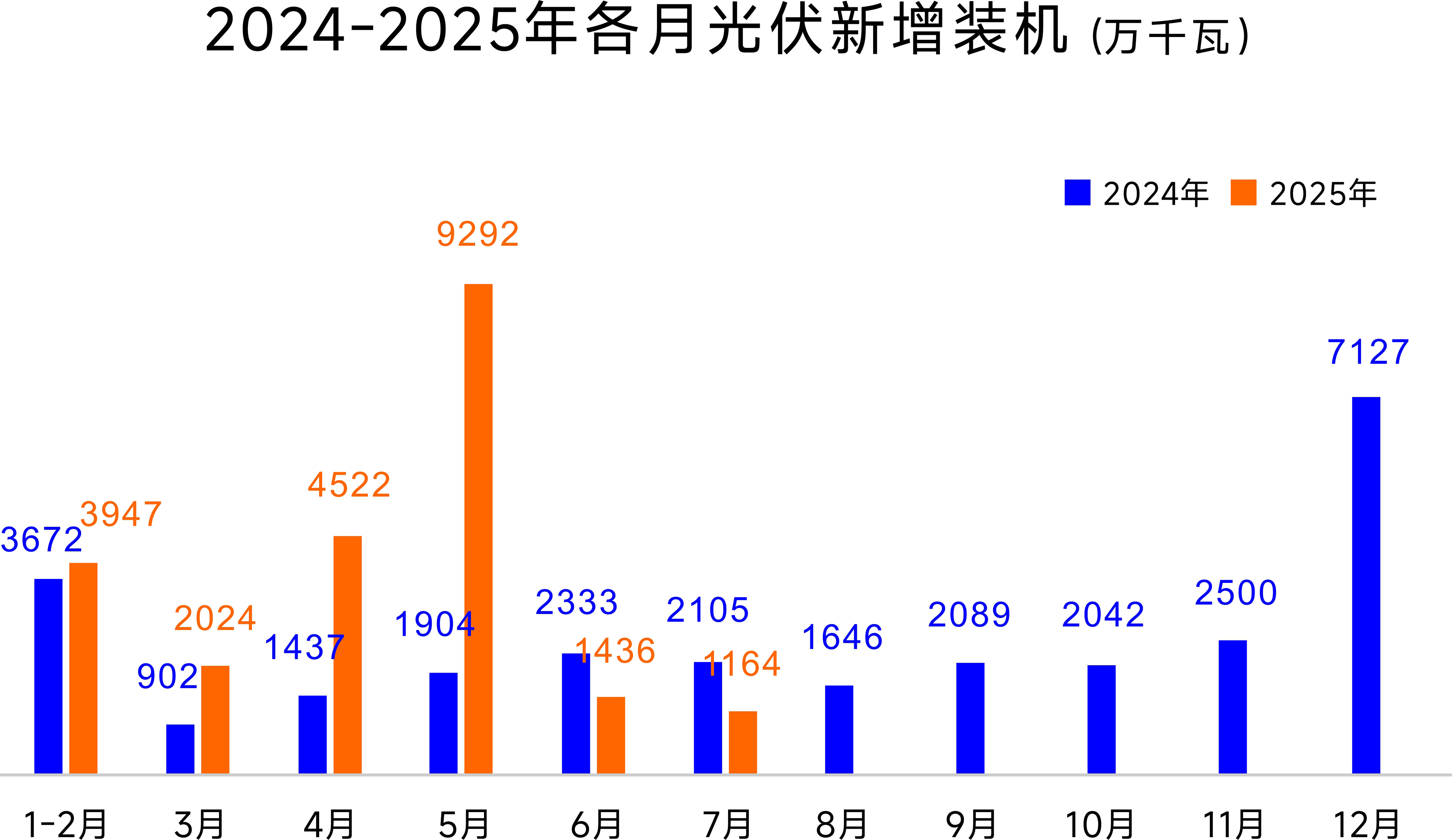 其中,光伏1—7月光伏新增装机规模223.25GW,7月光伏新增规模11.64GW。对比6月光伏新增数据来看,环比下降18.9%;对比去年同期数据,同比下降44.7%。