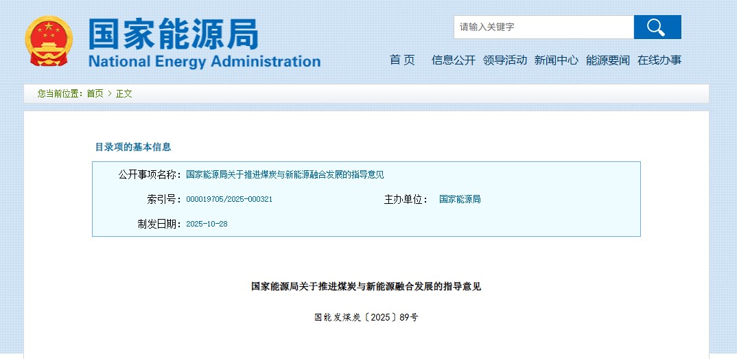 近日,国家能源局下发《关于推进煤炭与新能源融合发展的指导意见》。