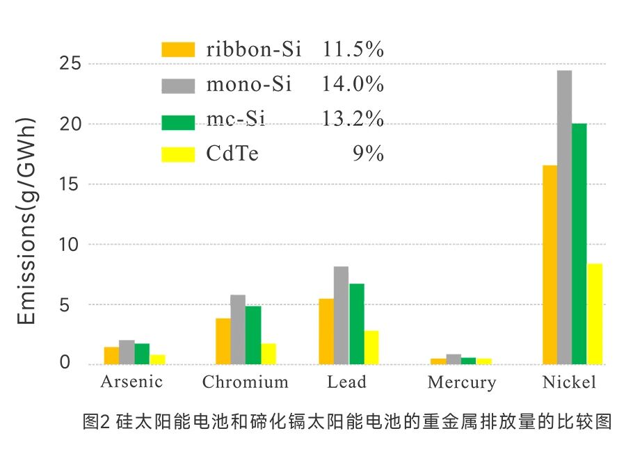 碲化镉薄膜太阳能电池的镉排放量仅为0.3g/Gwh,与清洁能源天然气持平。